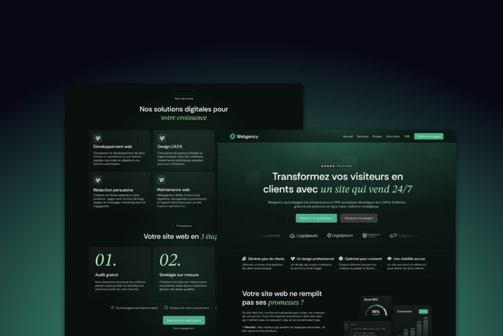 Chez Webgency, on conçoit des sites qui captivent dès la première seconde, pensés pour guider vos visiteurs jusqu’à l’action. Chaque détail est optimisé pour transformer l’attention en conversion.